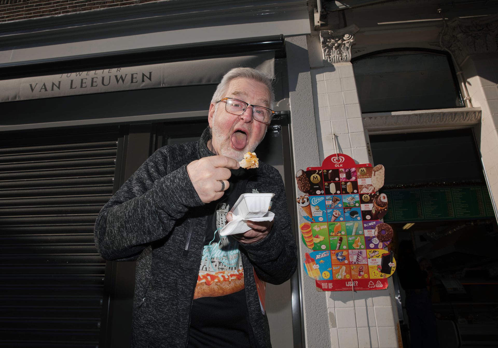 Natasja Warnars también recibe uno. ¿Se cansará algún día de la merienda? “No, el otro día me comí diez mientras caminaba. Hay que defender el nombre Frikandellenkoningin”.