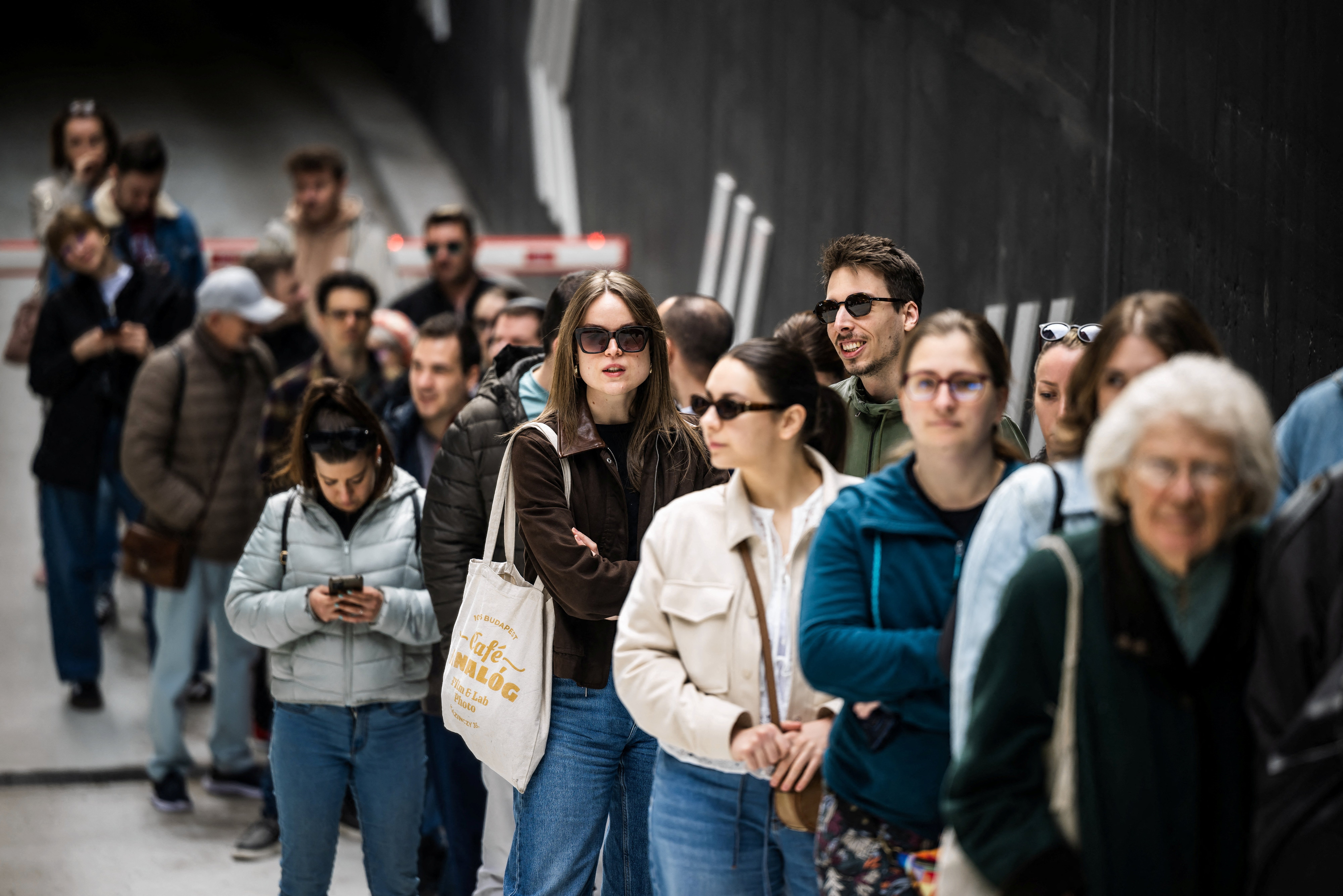 Una cola frente a un colegio electoral en la capital húngara, Budapest. La participación electoral en las elecciones parlamentarias alcanzó un nivel récord.