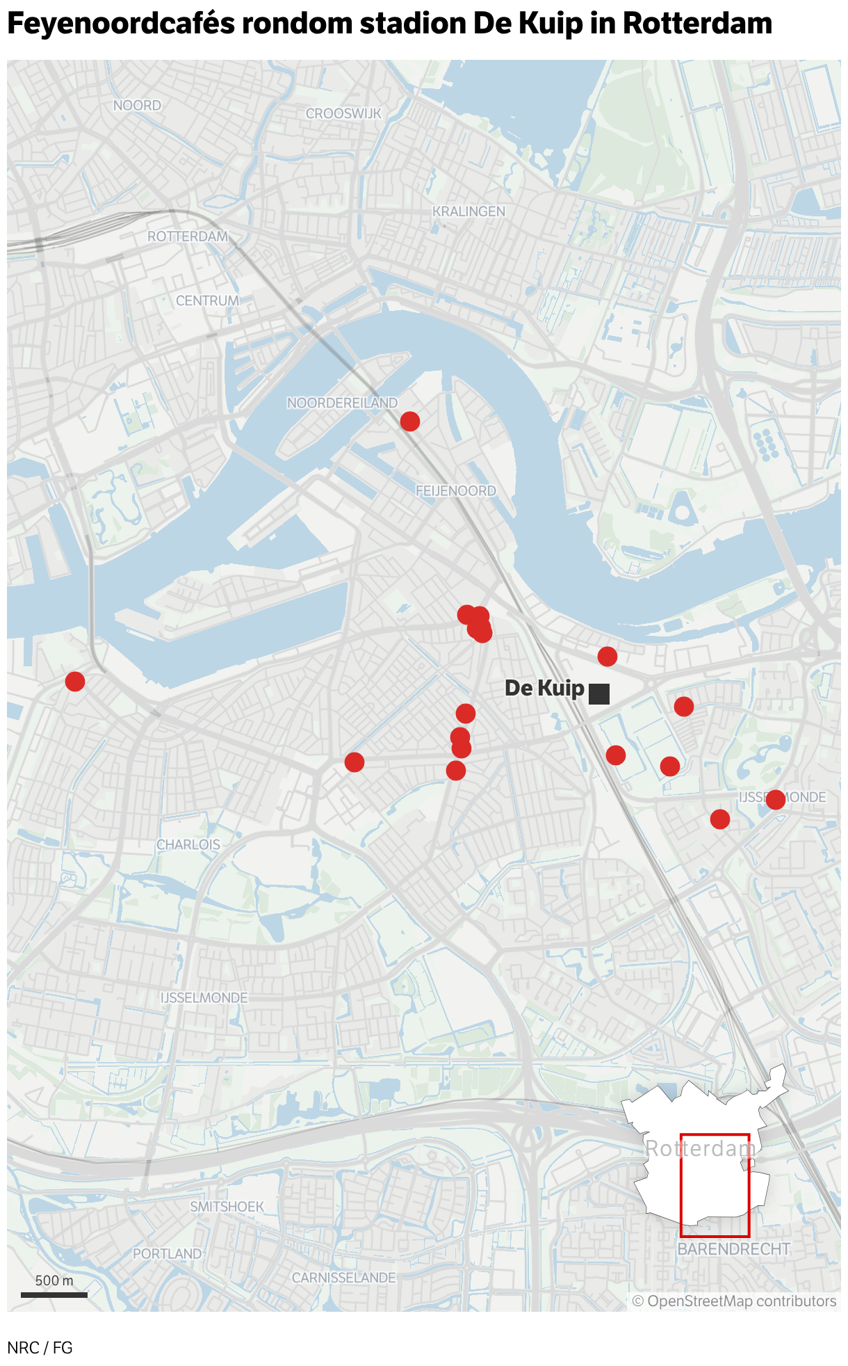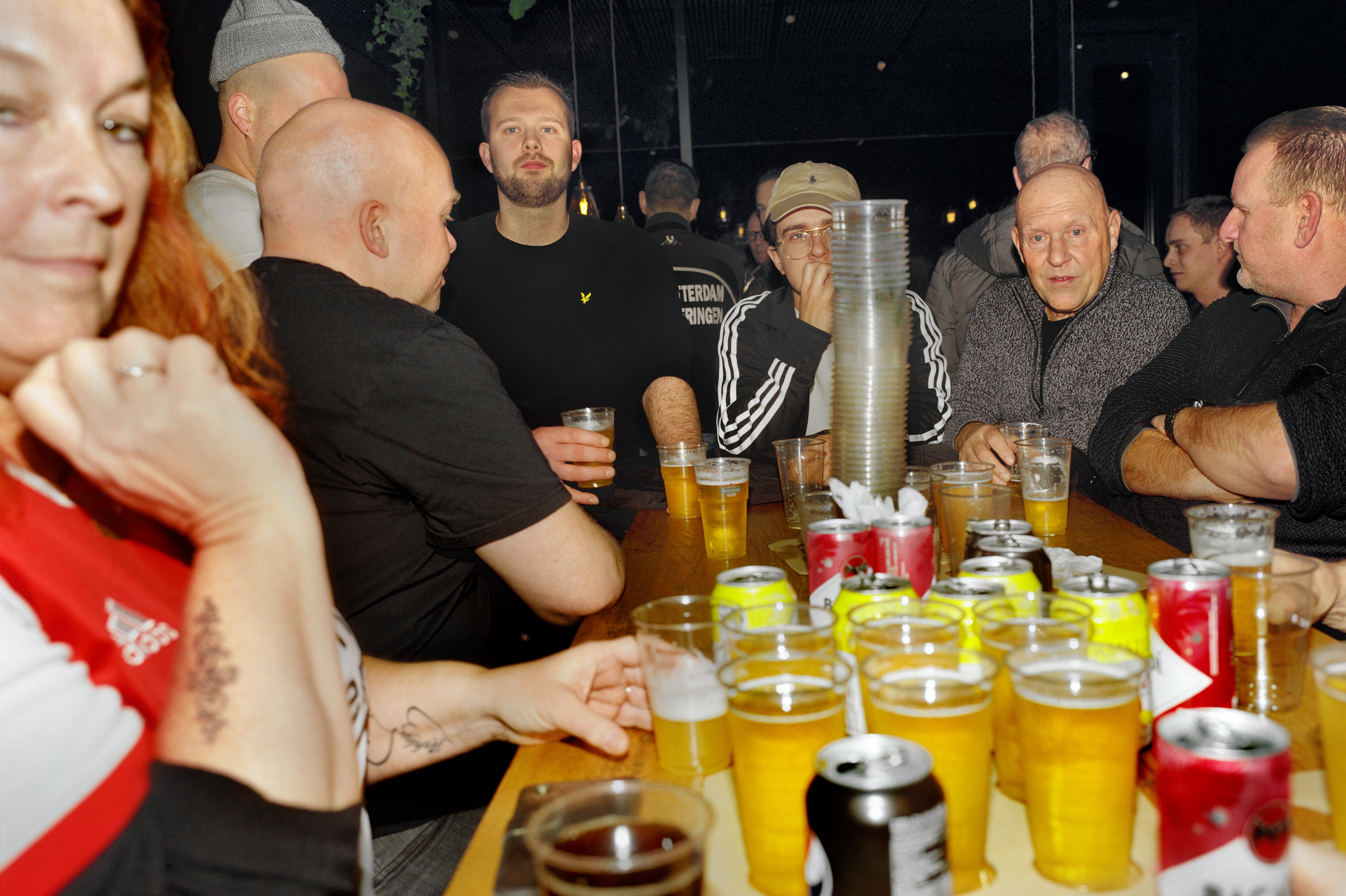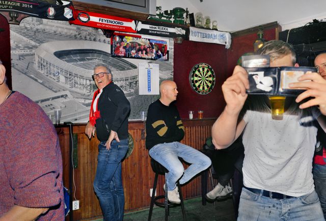 Muchas veces había mirado de lejos los pubs situados a pocos minutos a pie del Kuip, donde el Feyenoorden se animaba antes de un partido en casa. Pero el fotógrafo de Rotterdam Otto Snoek (1966) siempre pensó: No entraría allí solo con una cámara para nada. Hasta hace años empezó a hablar con Frans Reichardt, quien, como conocido aficionado del Feyenoord, quería retratar los cafés para la revista de aficionados junto con Snoek. de la mano.