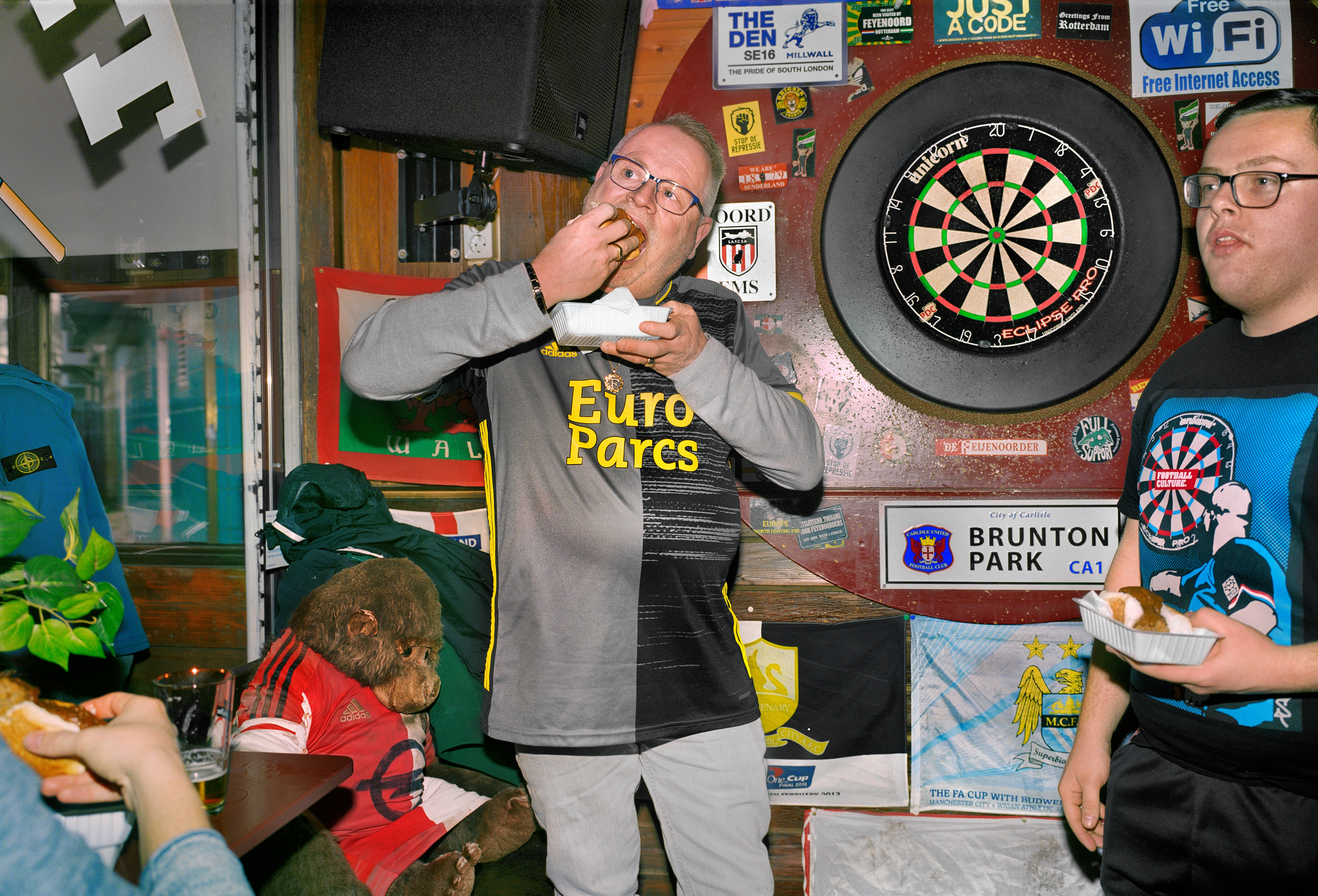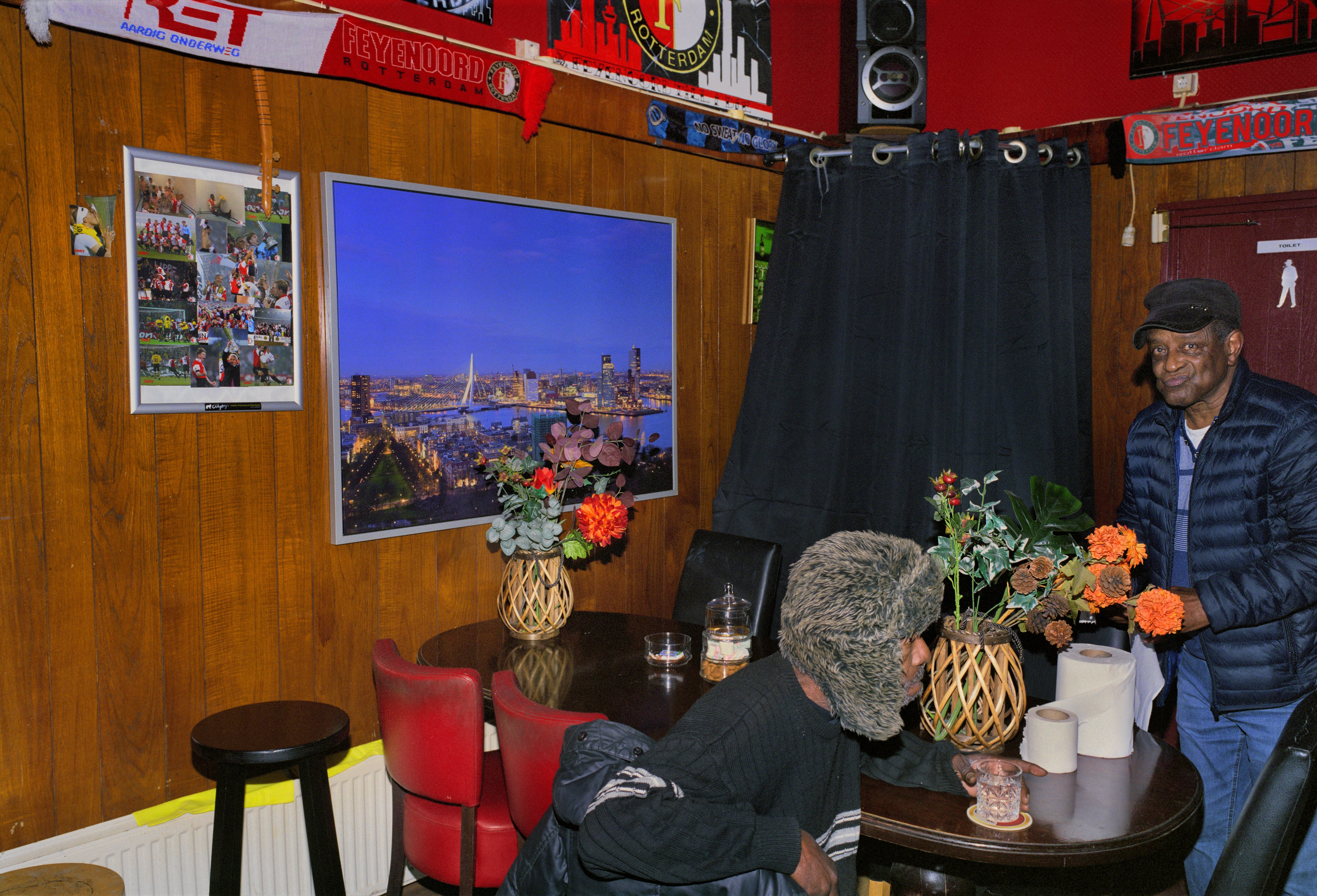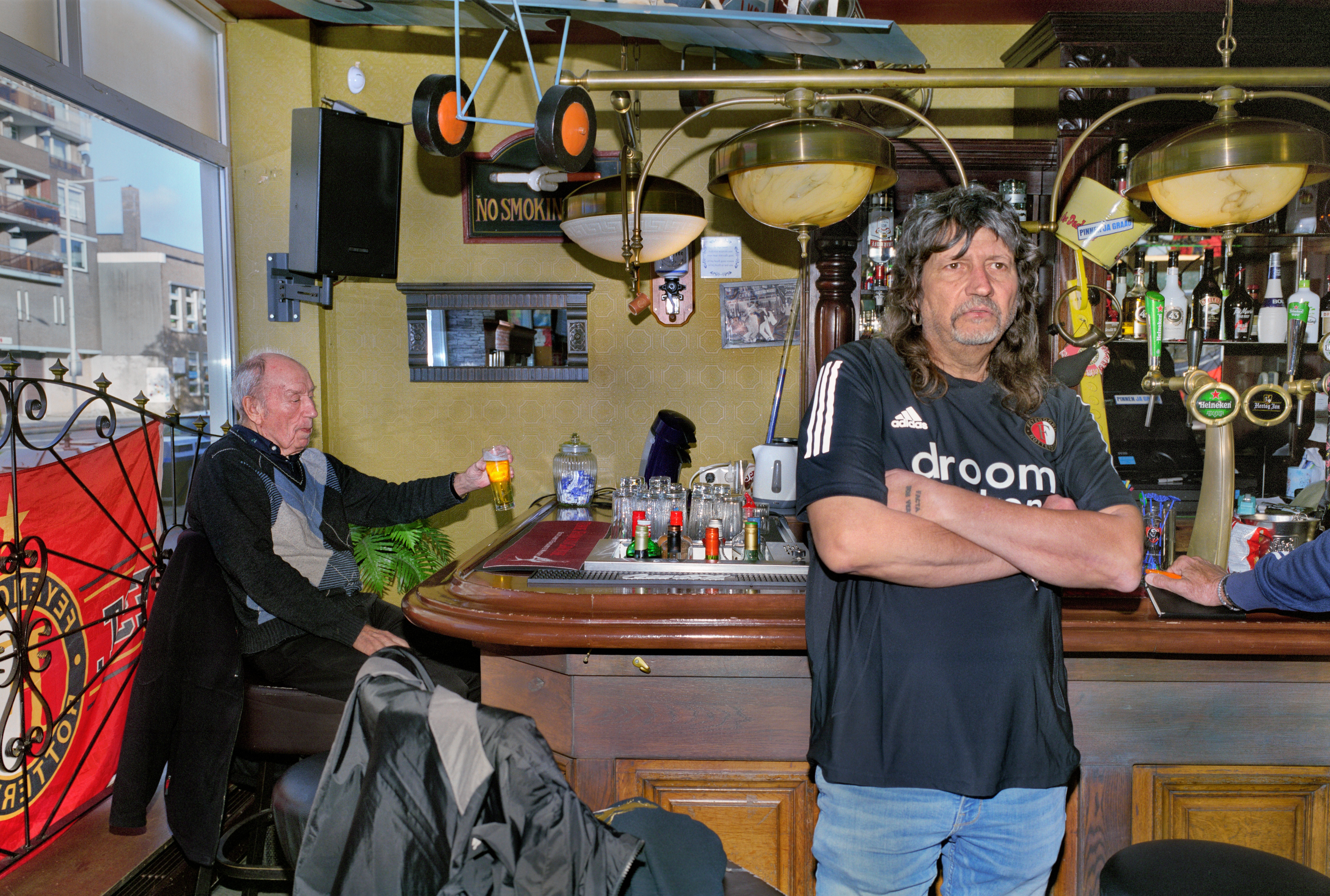 El pub de Feyenoord resultó ser un coto de caza muy adecuado; En esta selección de ocho fotografías siempre hubo algunos aciertos. “No se trata tanto de la decoración de un pub, sino de las alfombras persas. Sé que al final del día no me importa la decoración. El poder de estas fotografías está en estas mentes”.