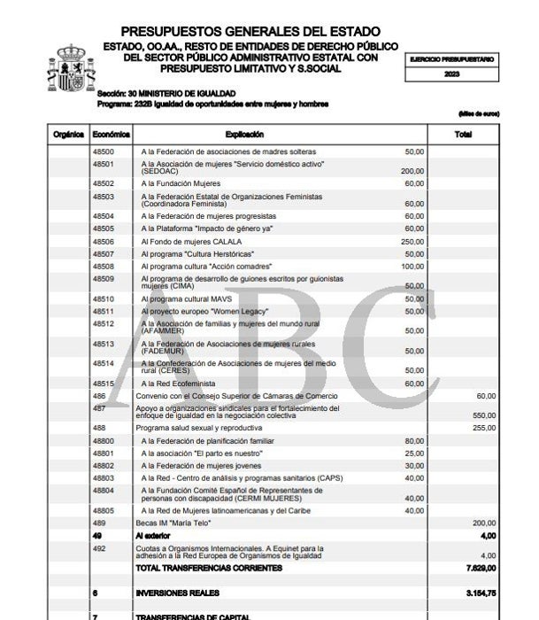 Sin embargo, en las cuentas de 2023 que entraron en vigor por la ampliación presupuestaria, el Instituto de la Mujer destinó $3,38 millones directamente a estos tres bloques, un aumento del 38,3%, beneficiando a 35 beneficiarios. En 2018, a excepción de 200.000 euros que se destinaron a una de las tres mayores empresas cotizadas, el resto de fondos (3,28 millones) se destinaron a 33 instituciones sin ánimo de lucro, 25 de las cuales eran asociaciones feministas.